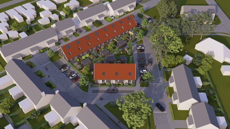 We nemen een sprong naar 2025. Uiteindelijk is eind november is de omgevingsvergunning afgegeven door de gemeente. Dit betekent dat we binnenkort verder kunnen met de voorbereidingen. Het plan bestaat uit een rij van acht woningen en een rij van drie woningen. Het betreft laagbouwwoningen met één verdieping en een kap. In het plan is bovendien gezorgd voor voldoende parkeergelegenheid voor toekomstige bewoners. Ook de huidige parkeerruimte op en rond het terrein wordt gecompenseerd.
